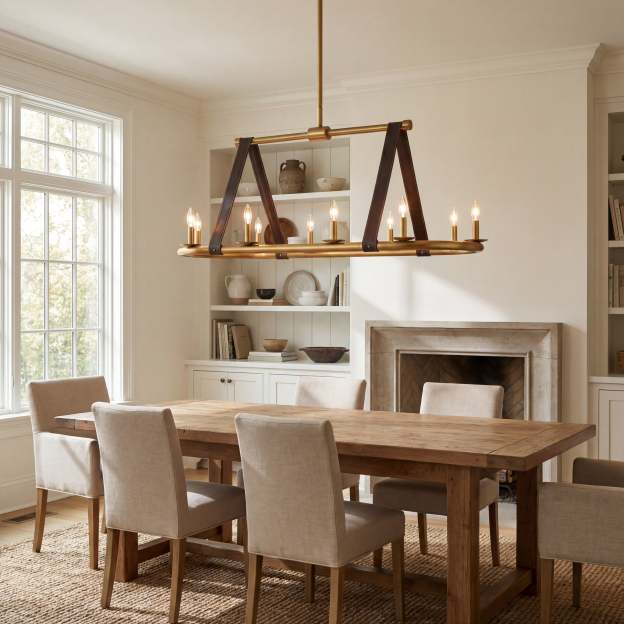 Chandelier: 19.5"H, 20.5"D, 52"W